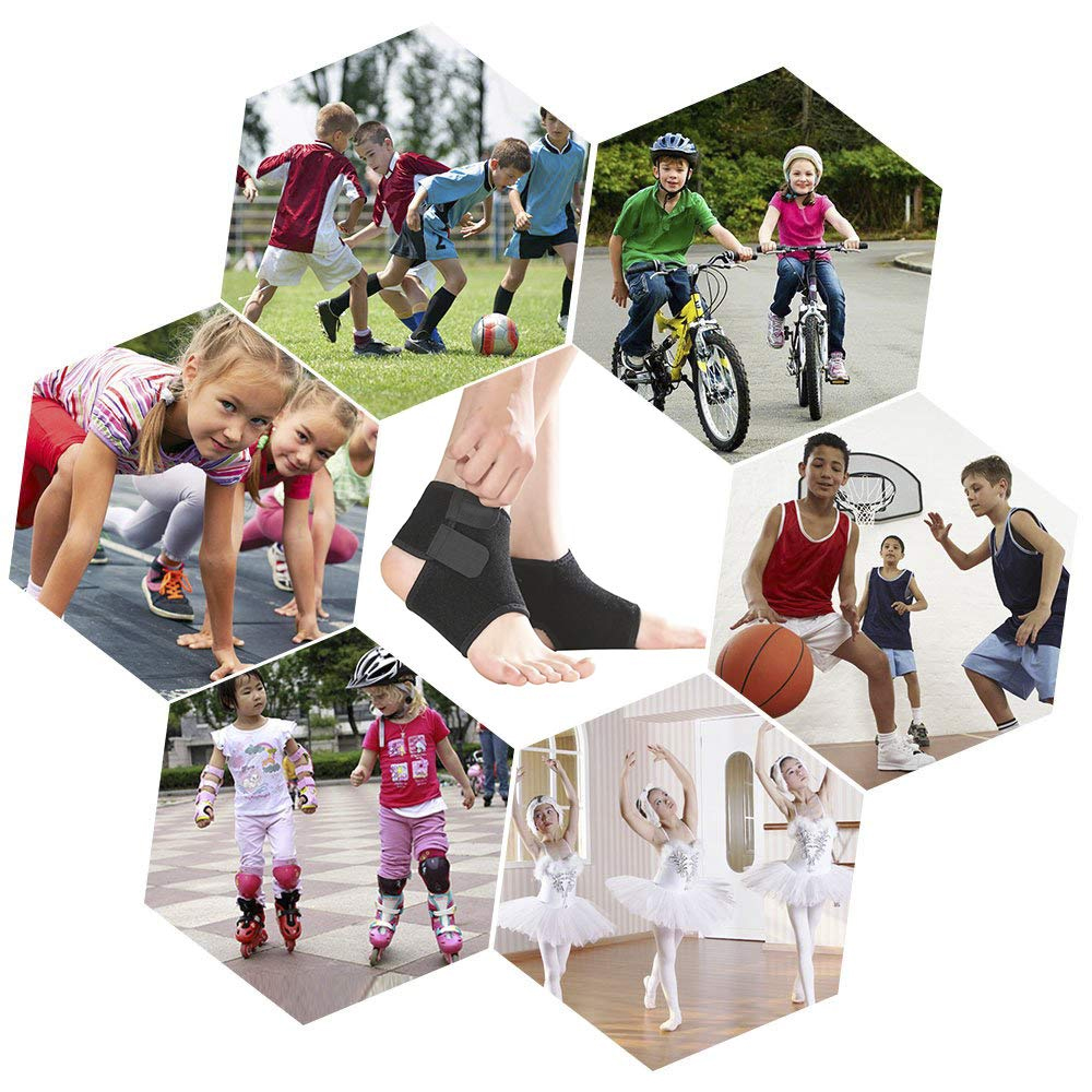 2. Breathable & Adjustable - The ankle braces are slim fitting comfort and can worn comfortably throughout the day. Flexible, durable and washable.The child ankle wraps comes with adjustable straps which allow to meet different requirements and ankle diameters. S fits little kid EU 30-35 shoe size; M fits big kid EU 36-39 shoe size.